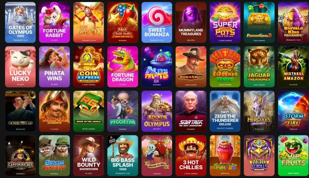 | Proveedores principales (comunes) | Pragmatic Play, Evolution, BGaming, Play’n GO, Quickspin, Red Tiger (variabilidad regional) |