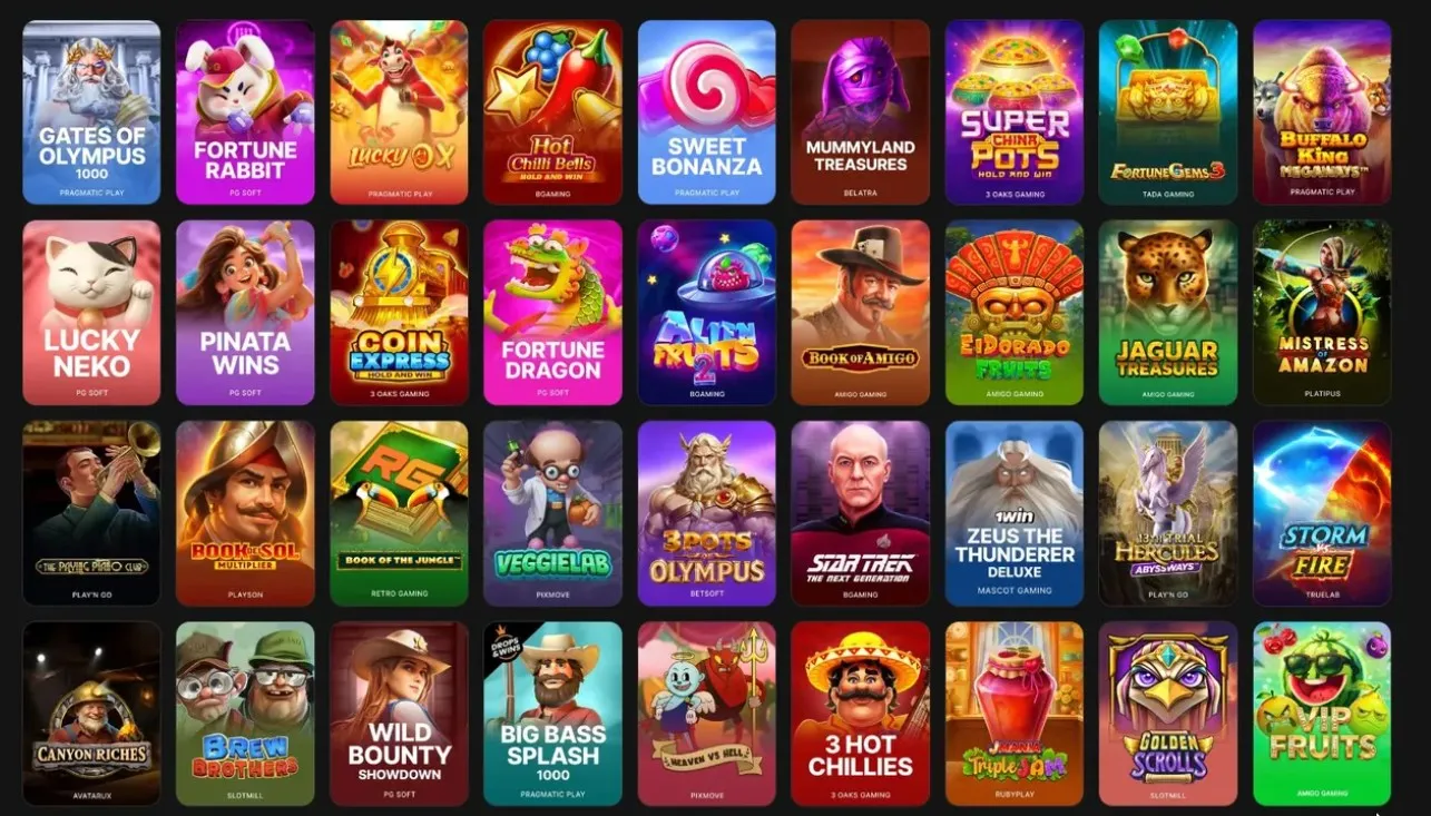| Agrupación de títulos | Slots, Jackpots, Crash games, Live Casino, Juegos de mesa, Virtuales |